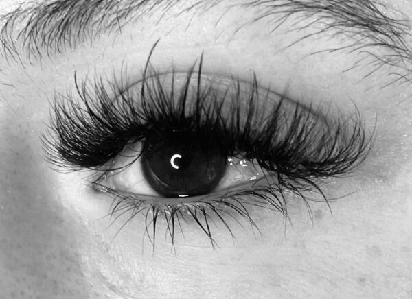 Multiple eyelash extensions added to each natural lash. Beautiful full look!